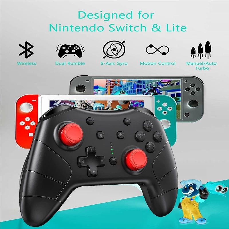 With a built-in 6-axis gyro, dual motors and turbo function, it's the best alternative switch controller to play Nintendo games like Fortnite, Super Mario, Pokemon, Zelda, Luigi's Mansion, animal crossing, Minecraft, Sid Meier's Civilization, Witcher, and more.