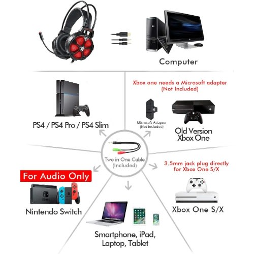 Equipped with a 3.5mm jack, Mpow gaming headset is widely compatible with PS4, PS5, Xbox One, Switch, PC, Laptop, Cellphone, etc. Note: The old version Xbox One needs an adapter