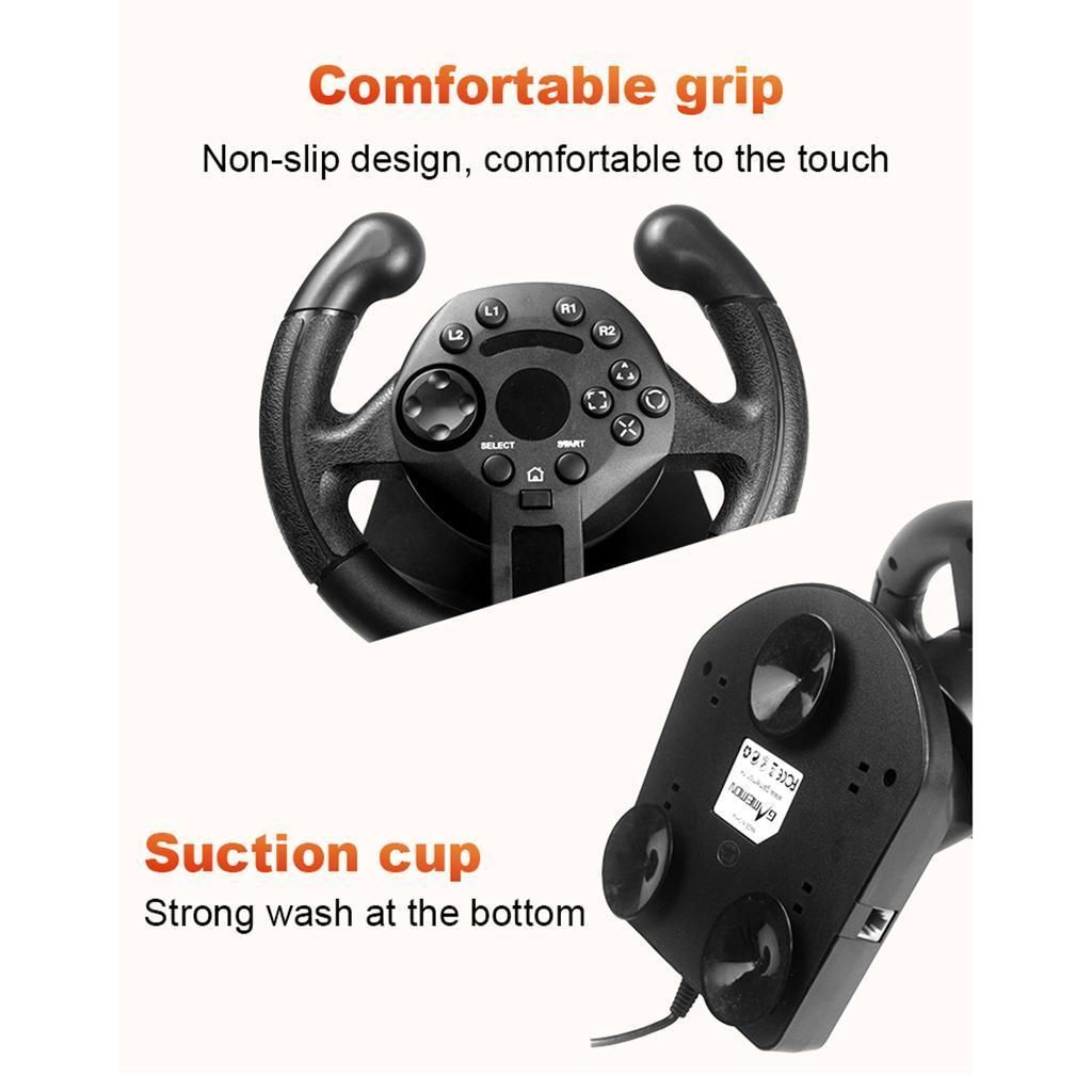 Compatible for PS3 consoleCompatible with Win9x/ME/2000/XP/Vista32/Vista64/WIN7/WIN8/WIN10Two operation : Analog & Digital Vibration feedback with gamesWith accelerating and braking control on hand buttons and foot pedal unit90-degree steering angleSmart mini size, 200mm diameter wheelComfortable design for the wheel with rubber hand grip