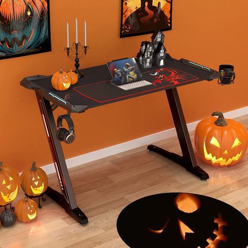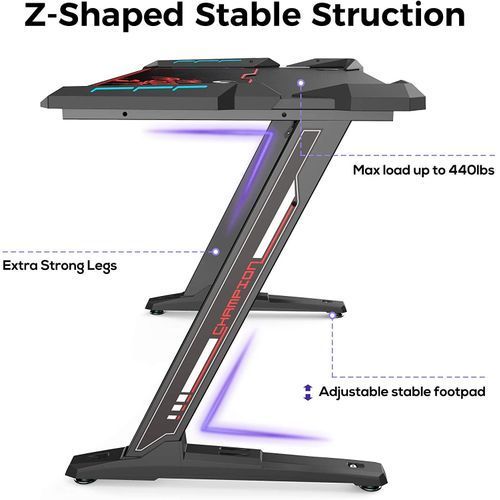 【Led Lighting】—— The home office computer desk comes with LED lighting. Plug the LED Lighting into your Gaming PC or Laptop with a USB. The LED lighting glows with a cool blue light for a better leisure & gaming experience.✔【Ergonomic Carbon Fiber Desktop】—— This gaming pc desk has a sleek carbon fiber texture and the surface has plenty of space for your monitors, keyboard, and other items.✔【FAST INSTALLATION】—— It will take you around 20 minutes to assembled thedesk,a clear and well-organized installation guide are helpful even if you are new to install a desk.✔【Healthy Panel Material & Sturdy Desk】—— The pc table adopts strong metal and wood to construct the framework that ensures the desk has an excellent bearing capacity and a longer service time.