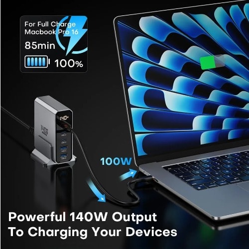 Buy GaN 5 In 1 QC3.0 QC4.0 PPS AFC Quick Charger For MacBook Laptop, iPhone And Samsung - 140w in Nigeria