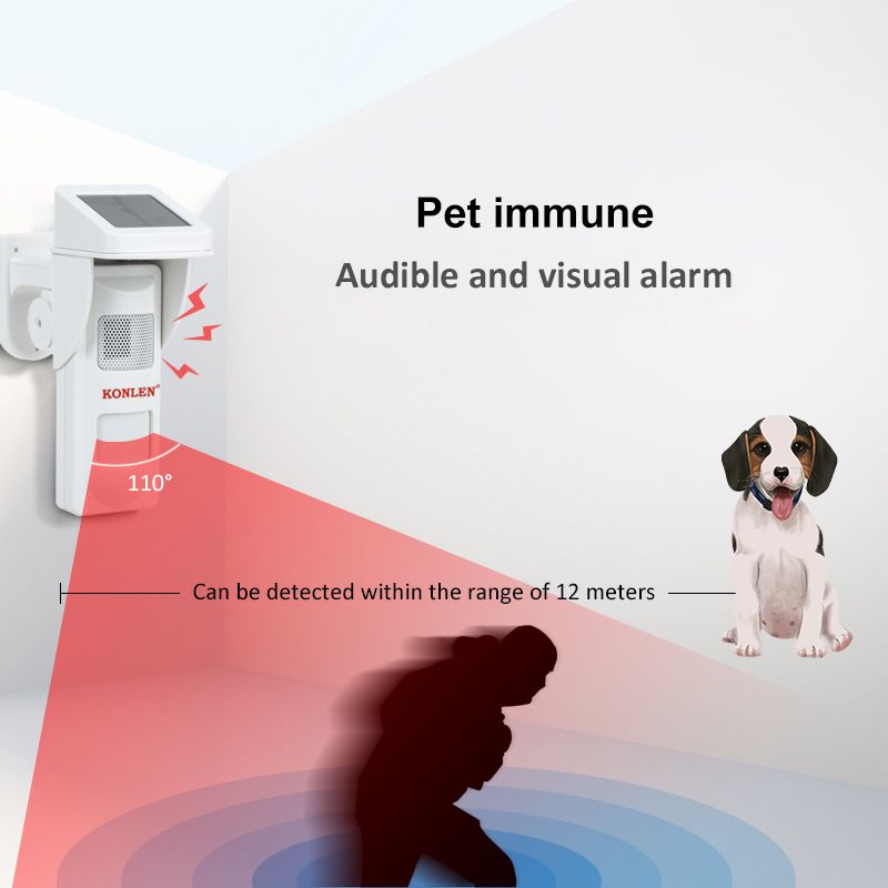 1. Self-recorded personzed voice, more targeted 2. Record time: 15 seconds 3. Chargeable lithium battery with solar panel, cabling free. 4. High flash light and buzzer frightening. 5. Pet immunity: 25kgs Max, can effectively prevent false alarms caused by pets.