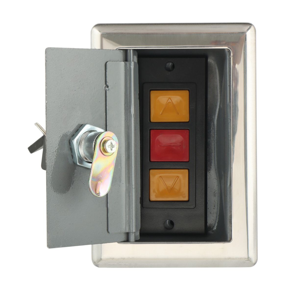 It has 3 buttons, a red stop button, and 2 yellow up and down buttons. You can control to the range you need at will