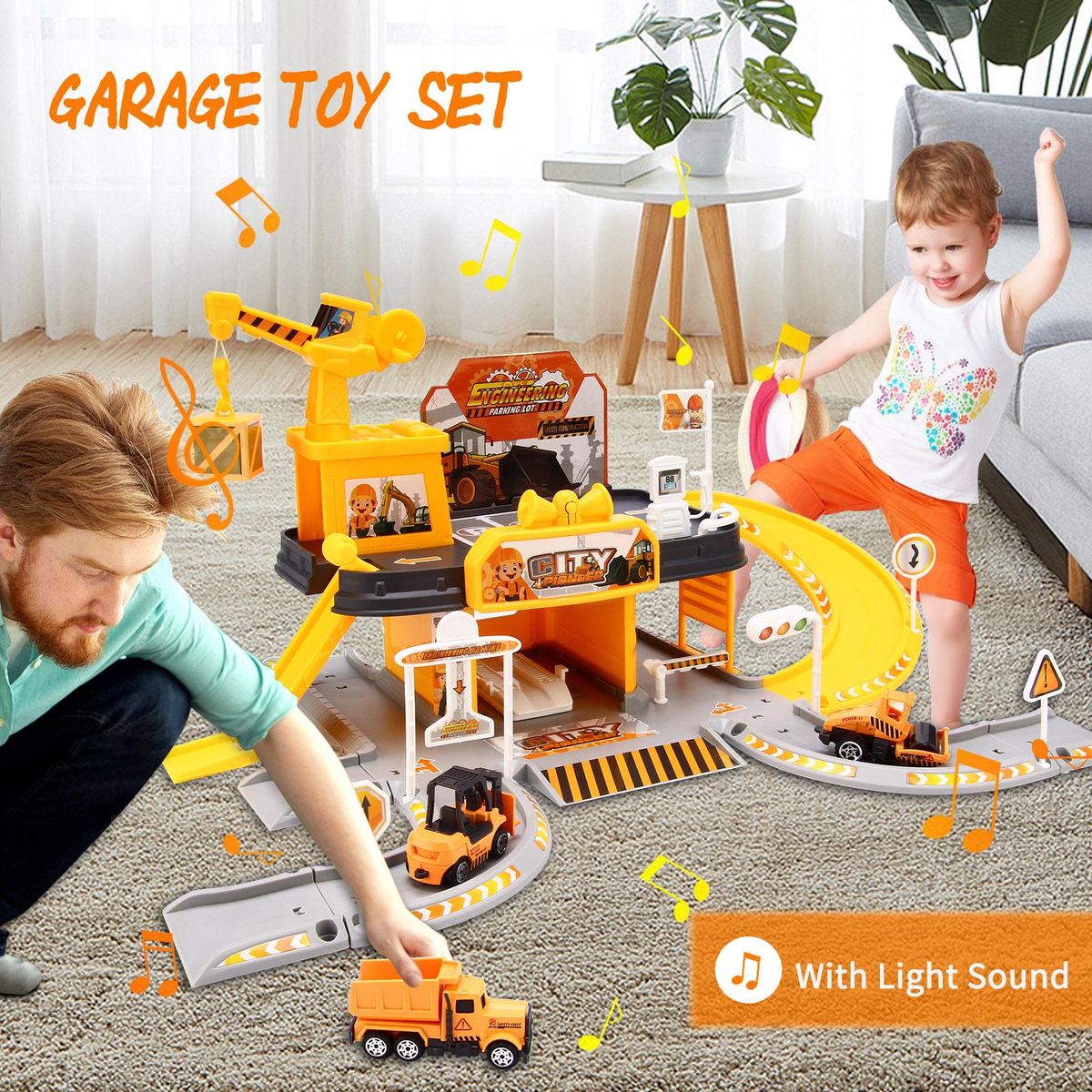 Buy Garage Toy Set Car Vehicle Building Parking Lot Race Tracks for Boys with Light Sound 3pcs Alloy Car in Nigeria
