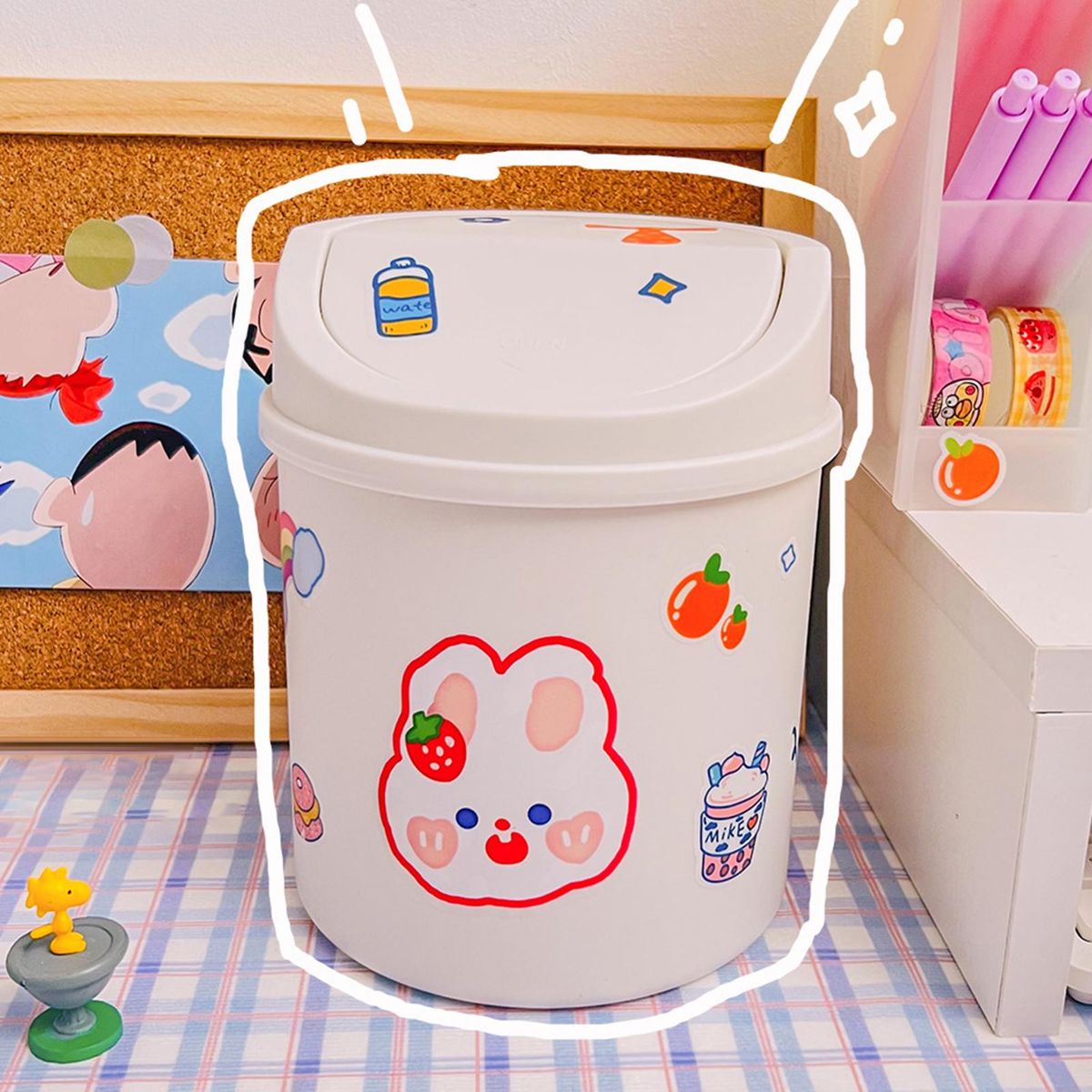 What this waste bin with its miniature and compact design can offer you is that it takes up no space and can be used not only as a bin but also as a pen holder for desktop storage.