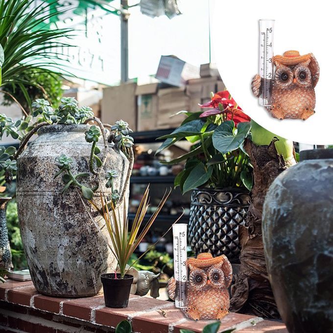 Owl Garden Sculpture w/ Water Gauge Lawn Garden Outdoor Ornaments