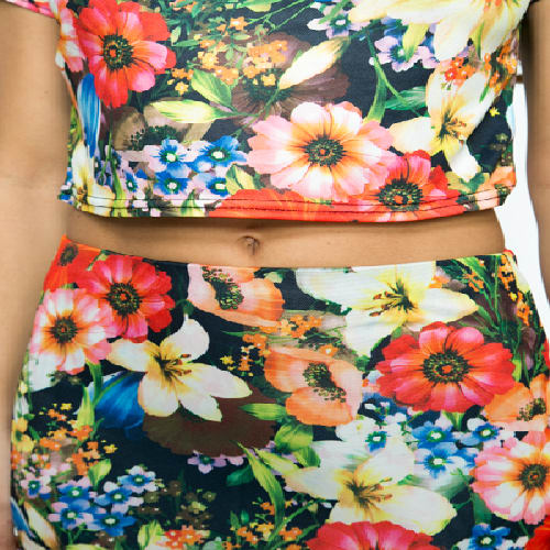 -Garden Floral Print Crop Top & Skirt Set is a party or beach casual wear