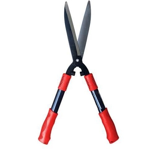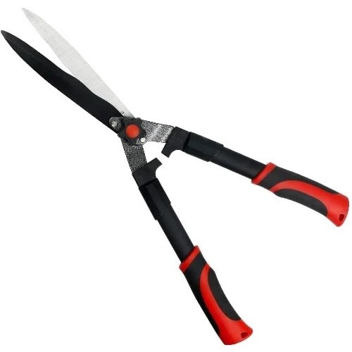 hedge shears makes trimming and shaping hedges easier than ever, even when pruning hard-to-reach branches or cutting at awkward angles. Telescopic handles multiplies your leverage to make cutting two times easier than using a short version of shears. A telescoping tubing handle design extends the shears from 26 to 36 inches overall length. The 7.5 inch blades are made of hardened steel that is extremely durable and can be sharpened if needed. The handles are steel tubes with PVC handles that provide comfort and secure grip. The shears can be taken apart for blade sharpening.