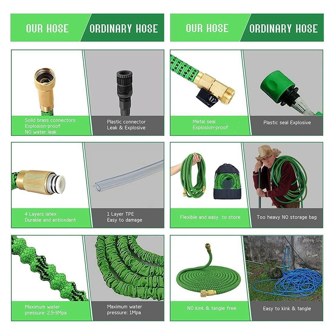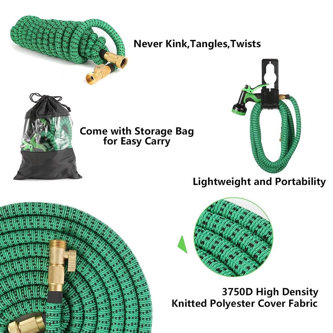 [INCREDIBLE EXPANDING DESIGN]: This garden hose can expand 3 times to its original hose length when water pressure is on, and shrinks to original pipe length in minutes when it's off. can cover your whole garden, you can make the watering simple and efficient. We will send you a pocket to store it. Just drain water from the hose when not in use, put in the bag and store it in a cool and dry p.