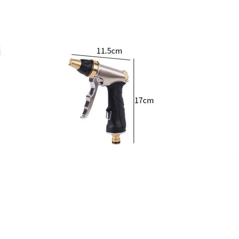 Product description The multi-function high-preure water gun can be used for various purposes such as car washing, indoor and outdoor doors and windows, floor cleaning, gardening and gardening spraying, and household sanitary cleaning. The heavy-duty textured rubber finish on the water gun handle provides comfortable and non-slip grip. The adjustable tip gives you a wide range of different watering modes to suit all your home and garden needs. Product Name: Car High Preure Water Gun Material: aluminum alloy Size: 17*11.5cm Package includes 1* high preure water gun