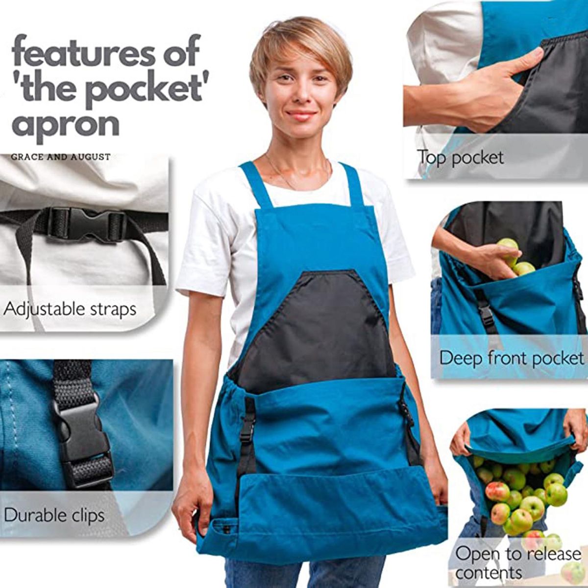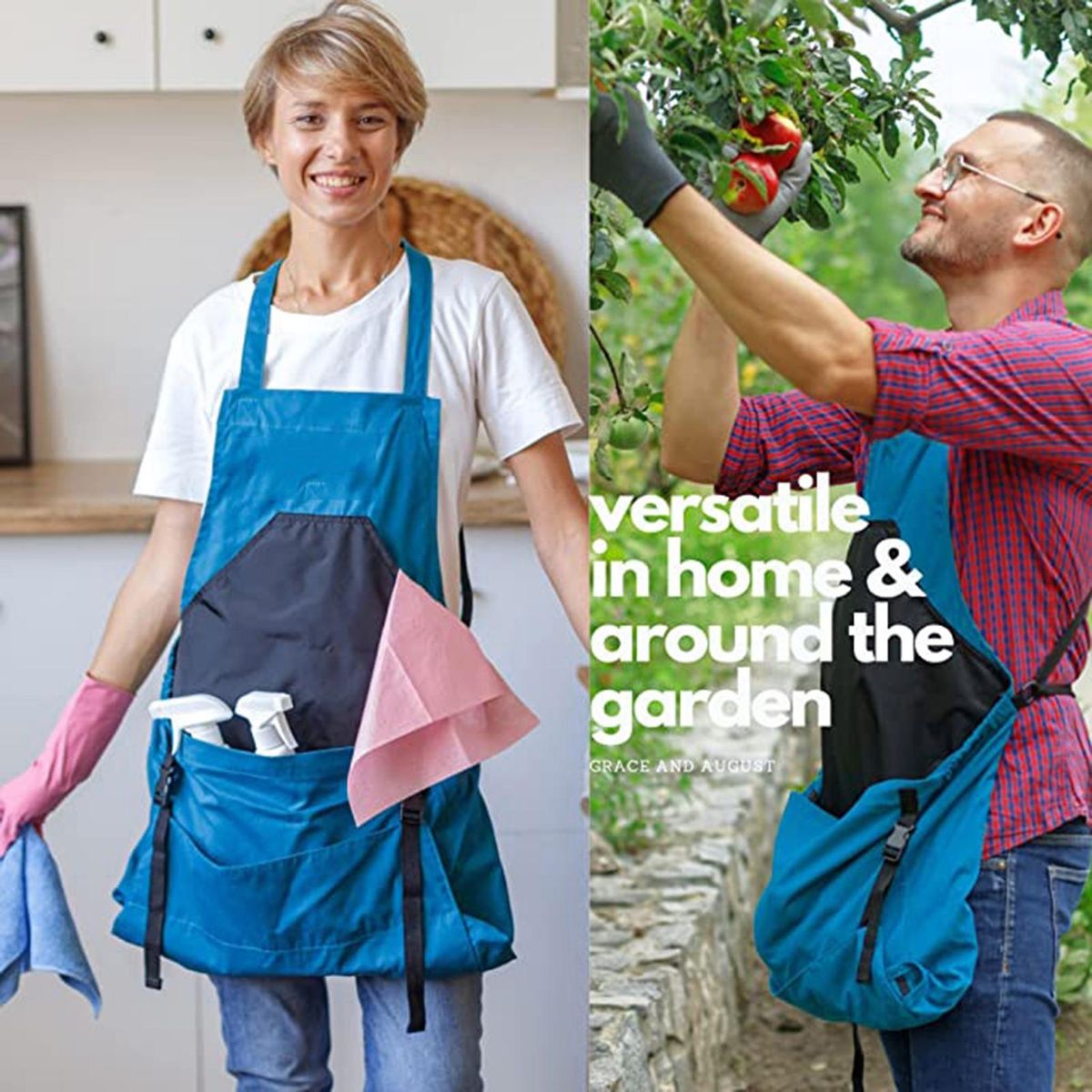Featuring adjustable straps that allow for the right length, this gardening apron additionally features a water and stain resistant lining that prevents sludge and moisture staining of weeds, vegetables and fruits.