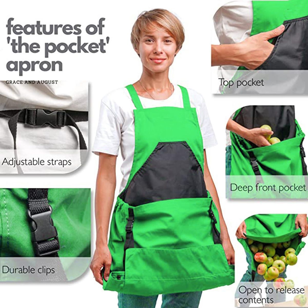 Featuring adjustable straps that allow for the right length, this gardening apron additionally features a water and stain resistant lining that prevents sludge and moisture staining of weeds, vegetables and fruits.