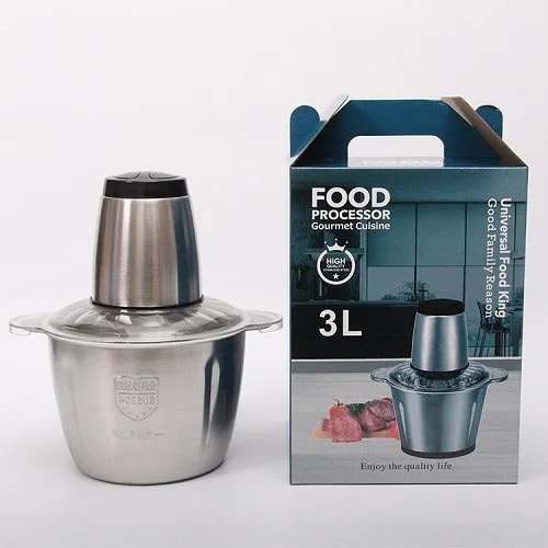 NOTESElectric meat grinders and twisting machines cannot be used to blend dry, hard food such as beans and rice.It's required that you switch it off for 3-5 seconds after every continuous working time of 10 & ndash;20 seconds. This method is beneficial for extend the life of the product.Do not blend lumps of ice with it.Do not use for mixing sticky Flour or dough for pastries.You can blend your fruits, meat and vegetables within seconds Can mix and blend your baby food Has 4 sharp and detachable stainless steel blades Has a 3 Liters capacity bowl Has a powerful and durable motor that produces low noise Built with a safety design, press down to start and automatically reset Easy to clean and all removable parts are dishwasher safeMade of food-grade material and stainless steel blades
