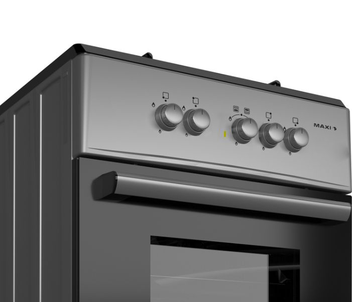 MAXI 60*60cm 4 GAS BURNER BASIC BLACK/GREY is a standard gas cooker with oven so space will not be an issue in your kitchen. It has streamlined design which will complement your kitchen decor. The maxi gas cooker is ideal to use in homes, hostels and restaurants.