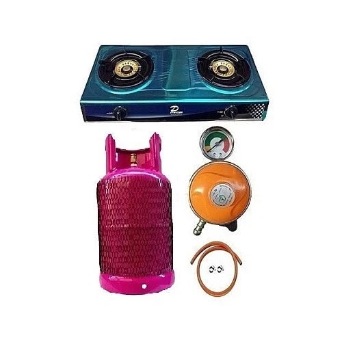 Buy Gas Cylinder + Glass Double Burner Cooker + 3 Yards Hose +Standard Regulator & Clips. -12.5kg in Nigeria
