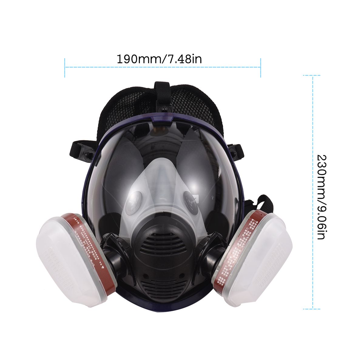 1 x Full Face Cover,2 x Filter Box,2 x Plastic Covers,12 x Cotton Filters,1 x Storage Bag