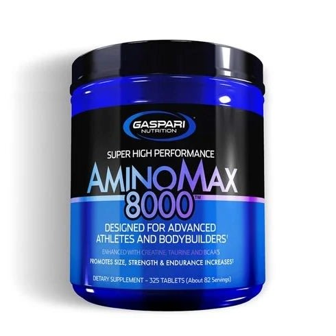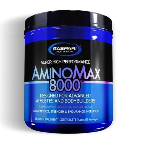 Gaspari Nutrition Amino Max 8000 - 325 TabsGaspari Nutrition Amino Max 8000 is ,Designed for Advanced Athletes and Bodybuilders,Enhanced with Creatine, Taurine and BCAA's and Promotes Size, Strength & Endurance Increase. A Dietary Supplement of about 82 Servings, 8 Grams of Amino Acids,which Increases Size, Strength, and Recovery and Prevents Muscle BreakdownUse as Pre or Post-Workout.