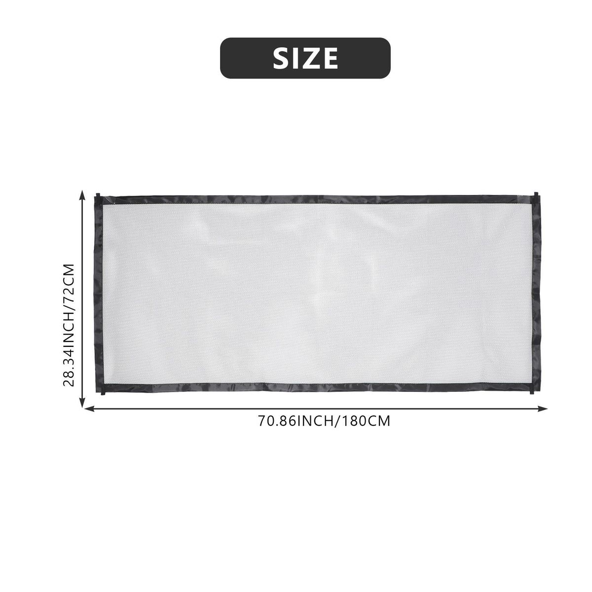 This Gate for baby is Width 709 inches x height 283 inches 180cm x 72cm Note measure the size of your door buying Each Set Includes one fabric woventwo stretchable poles four sticky hooks This gate will help you put your baby where you to stay Worry no more for their safety and security you can now keep from going outside It can not adjust the size