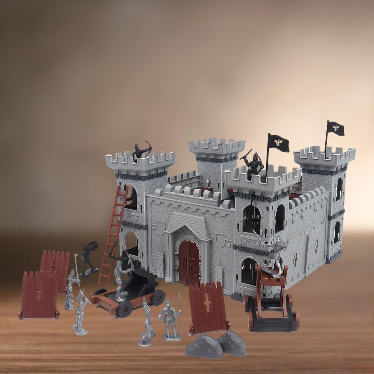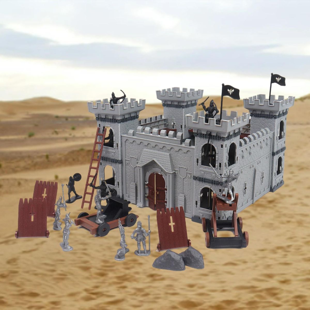 1 Set Castle Battle Model (1 Piece Castle,12 Pieces Soldiers,1 Piece Ladder, 2 Piece Flags, 2 Pieces Stones, 3 Pieces , 2 Pieces Cars)