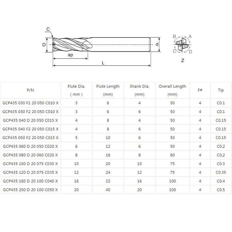 GCP435 060 D 25 060 C020 X Milling Tools |
