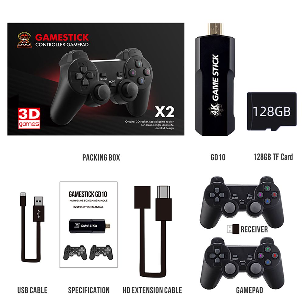 Title:GD10 Game Stick Built-in 40000 Games 128GB 2.4G Wireless Controller HD Retro Video Game Console 4k HD Video Game Console