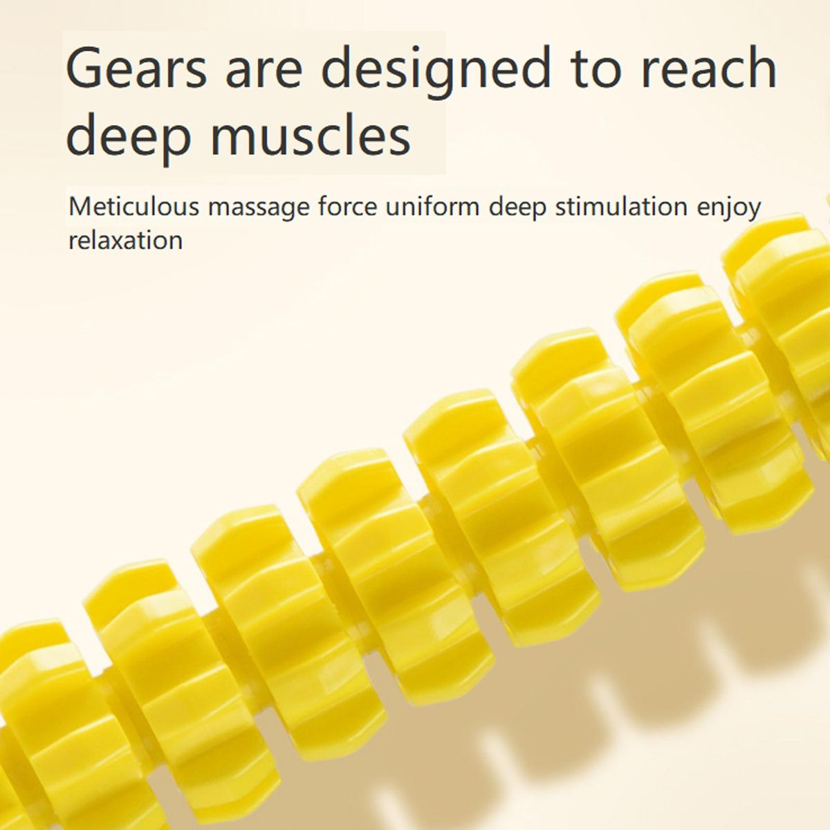 With gear design, this yoga massage bar three-dimensional massage makes the force even, non-slip handle makes a comfortable grip makes the force even, and has a strong toughness, pressure is not easy to deformation.