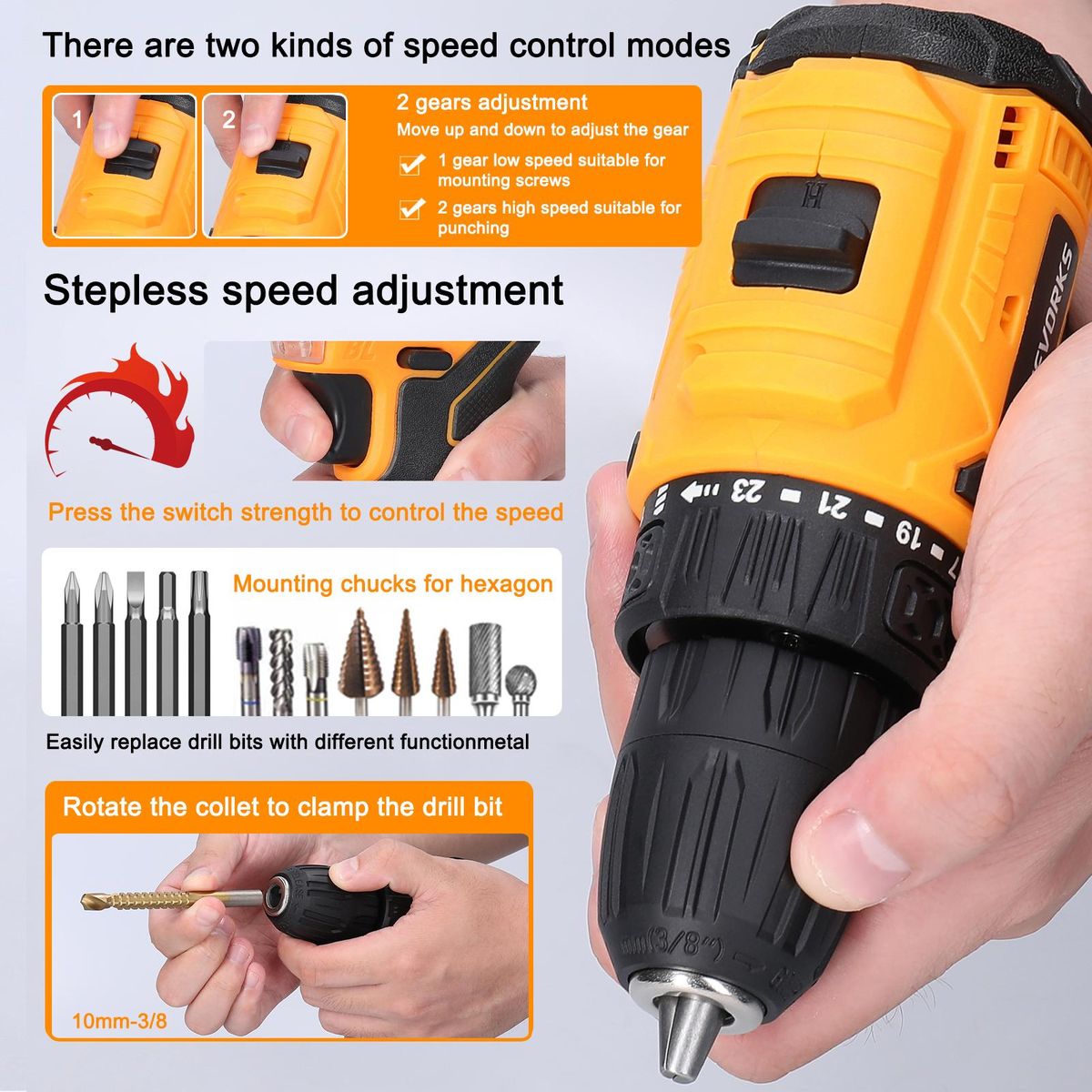 Buy Geevorks 16.8V Cordless Driver Drill Household Brushless Motor Electric Screwdriver Regulation Rotation Ways Adjustment Lithium Drill Home Improvement Power Tool in Nigeria