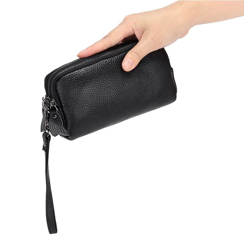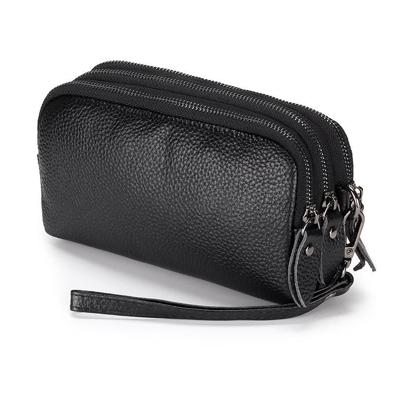 Buy Genuine leather clutch bag 2023 new European and American women's three-layer small handbag simple top layer cowhide change mobile phone bag trend Royal blue in Nigeria