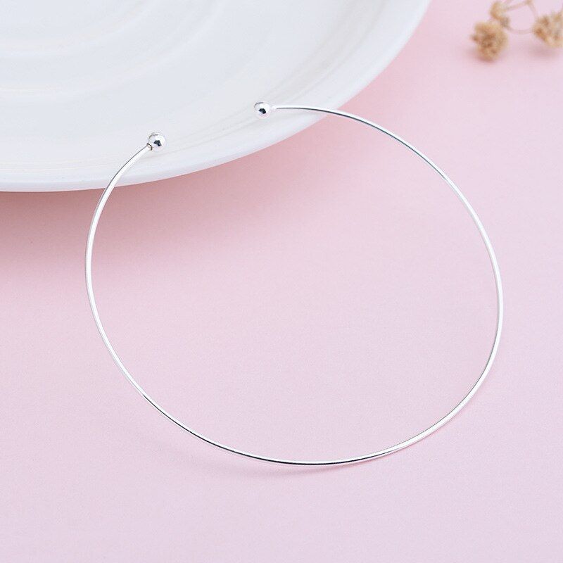 Women Bracelet Material: Real Solid 925 Sterling Silver Diameter: 6.0 cm Wire Thickne: 1.0mm Bead Size: 4mm Noted : This bangle matches 4mm silicone bead. It is soft. Do not use strength, when operation.