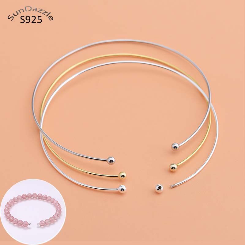 1X Genuine Real Pure Solid 925 Sterling Silver Cuff Bangles for Beads Hand Band DIY Jewelry Findings Beading Threading Bangle