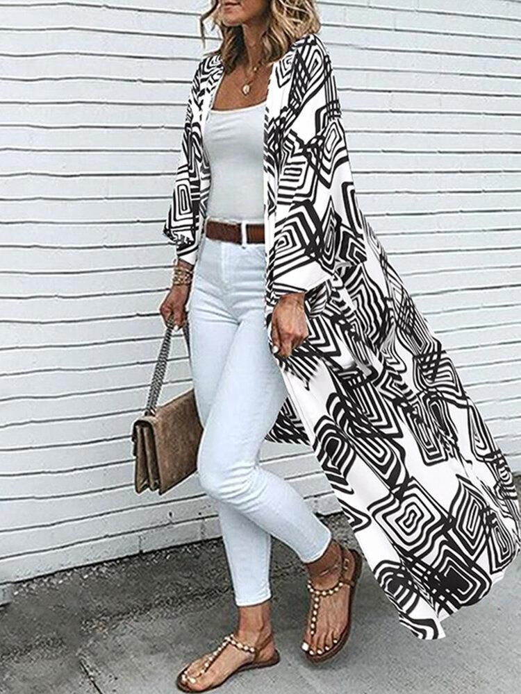 Buy Geo Print Loose Open Front Long Sleeve Bohemian Cardigan in Nigeria