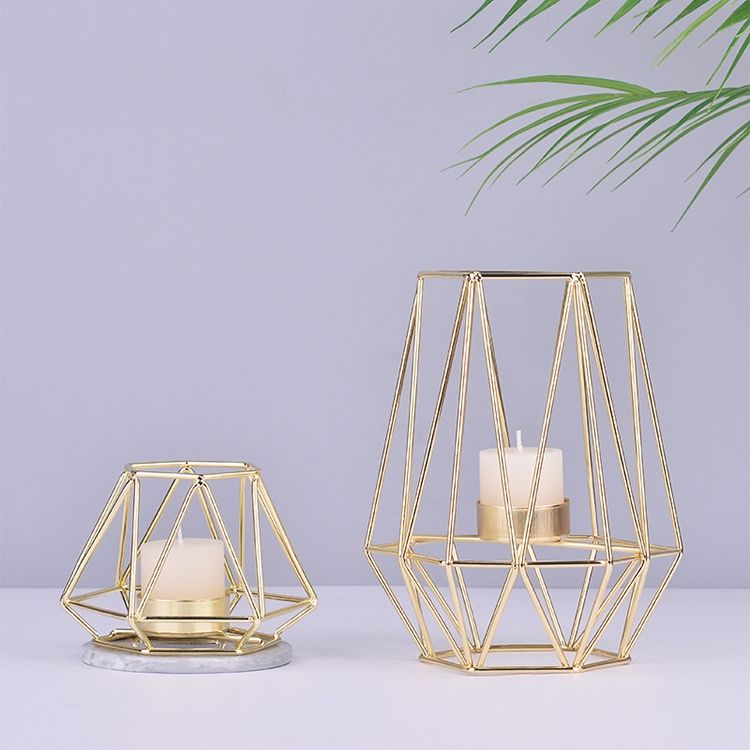 Geometric Candle Holder, Size: Golden Small