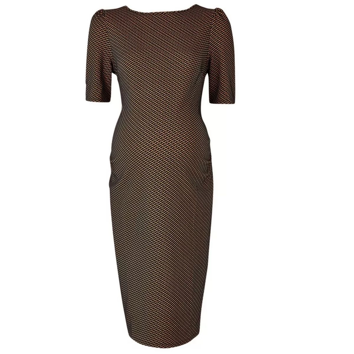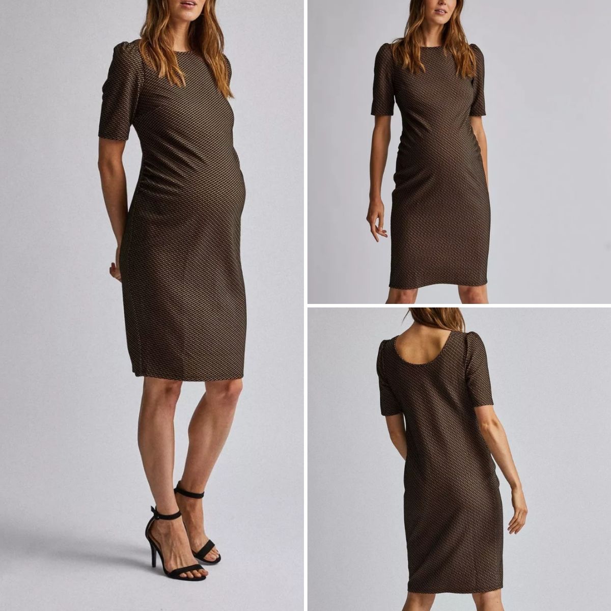 Buy Geometric Ruched Side Brown And Black Maternity Dress in Nigeria