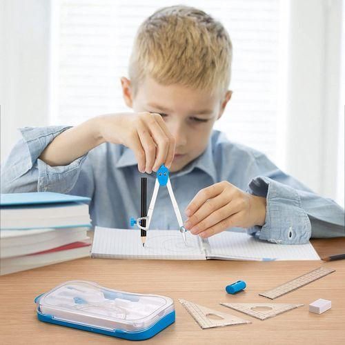 Your affirmation is our greatest motivation ! ! !10 Piece Geometry Kit Set Includes 2 Metal drawing Compasses, 2 Triple-cornered s (45 degree & 30 degree/60 degree), 6 inch Ruler, 180 degree Protractor, Pencil Sharpener, Eraser, Pencil Lead Refill.