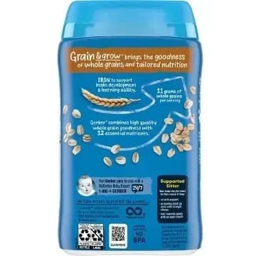 SINGLE GRAIN CEREAL: This single grain oat cereal features vitamins C, E, zinc and 6 B vitamins for healthy development, plus calcium for healthy bones and teeth. No artificial colors or flavors.Solid Starter: Single grain infant cereals are an ideal first solid food to check for food sensitivities and help develop baby's eating skills. Just 2 servings meet 90% of your baby's daily iron needs.PEDIATRICIAN RECOMMENDED: Gerber Cereal is the #1 pediatrician recommended brand for infant cereals among pediatricians who recommend infant cereals.Gerber Bonitos: Our foods start with whole ingredients like real fruits, vegetables, and grains to help nourish your baby from the beginning, from infant formula to baby food to snacks and toddler foods.Nutrition for growth: Like your baby, we are always growing and learning. More than ever, we are committed to being your partner in parenting with quality ingredients, nutritious foods, and expert guidance.