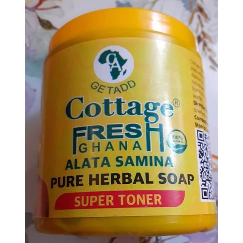 Cottage Fresh Alata Samina Pure Herbal Soap Super Toner With vitamin E tones skin. It is a skin lightening soap Old age Ghana African soap with no side effect, fights bacteria and other skin disease, it is pH balanced.