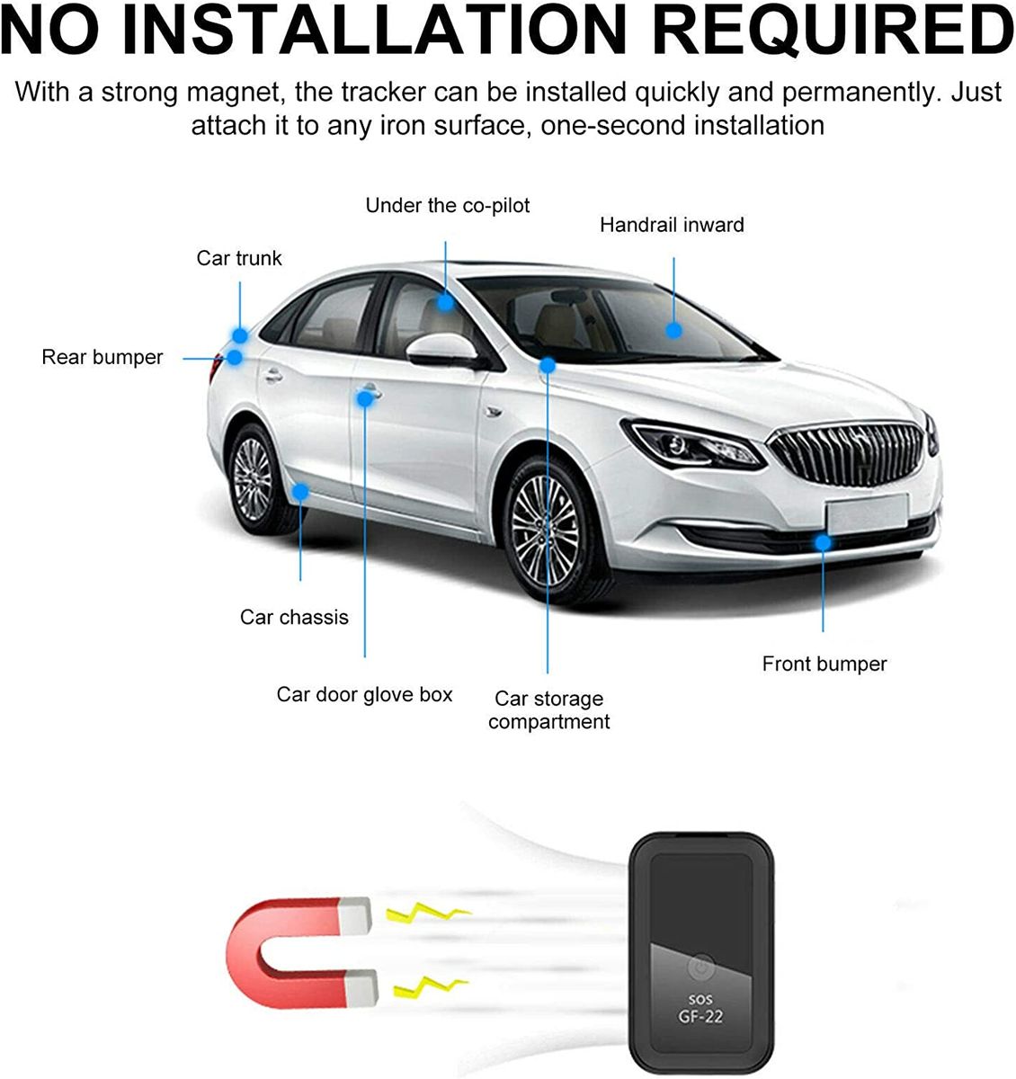 【No Installation Required】With a strong magnet, the tracker can be installed quickly and permanently. Just attach it to any iron surface, one-second installation. Built-in 500 mAh lithium battery, maximum 10 days standby, normal working time: 6 days.