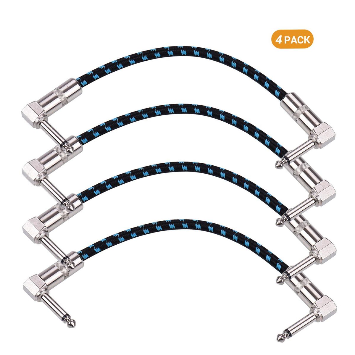 Buy Ggiant AC-18-3 Guitar Pedal Patch Cables 6 Inch Length Coxial Cable Pure Copper Shielding with 1/4 Inch Right Angle Connectors Effect Board Cables Cords Black and Blue Tweed Woven Jacket 4 Packs in Nigeria