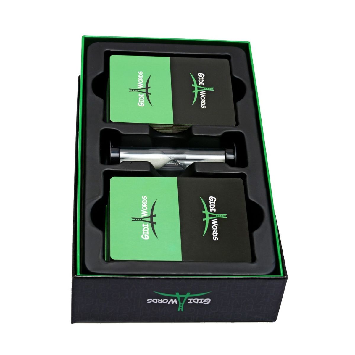Gidi Words is played by four players or more. The game starts by dividing players to different teams, and then each team tries to get members of their team to predict as many Gidi Words as possible within a minute, without mentioning the Forbidden Words. The Gidi Word is the Word or Phrase on top of the card, while the 5 words below the Gidi Word are the Forbidden Words.