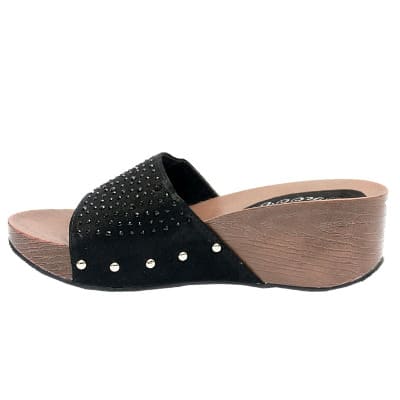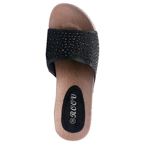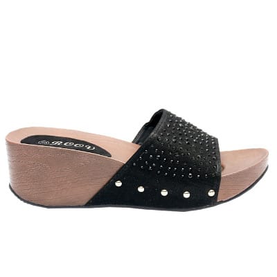 Buy Gillian Slippers With Wood Inspired Sole And Studded Top - Black in Nigeria