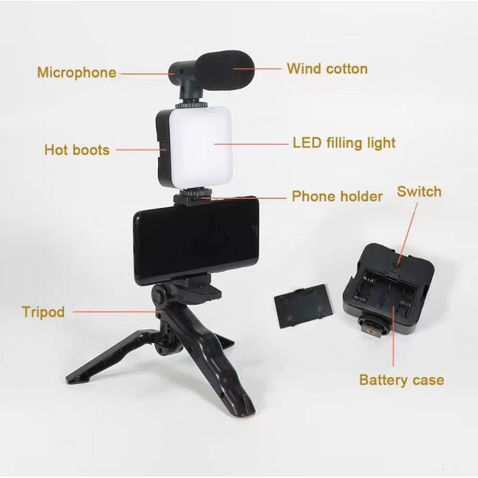 Vlogging Kit/Video Maker Kit Light + Microphone + Tripod + Phone Holder