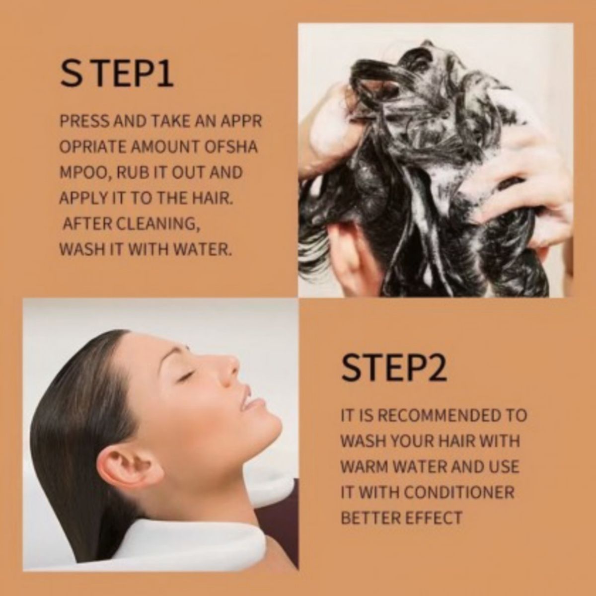 After the hair is fully wet,take an appropriate amount of shampoo and apply it evenly on the hair,rub it into a rich and delicate foam gently massage it with your fingertips for a while then rinse it off with water.
