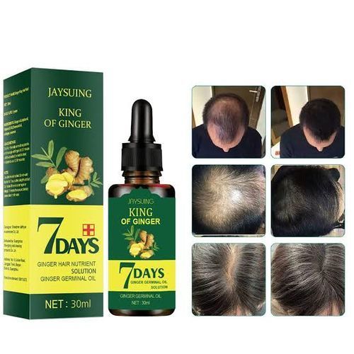 7 Days Ginger Germinal Oil for fast hair growth. Made with pure traditional Chinese medicine.To be used from the roots of hair to the top. Works wonders within seven days. Made up of ginger and other wonderful herbs which aid hair growth. It can be used by both males and females.Not suitable for pregnant women.Ingredients are purely plant extraction. water,Ginger extract,Ginseng extract,Angelica extract,Vitamin B,Tocopherol (Vitamin E),Salvia miltiorrhiza extract,Polygonum multiflorum extract.Hair Growth.Effective and safe.30ml.