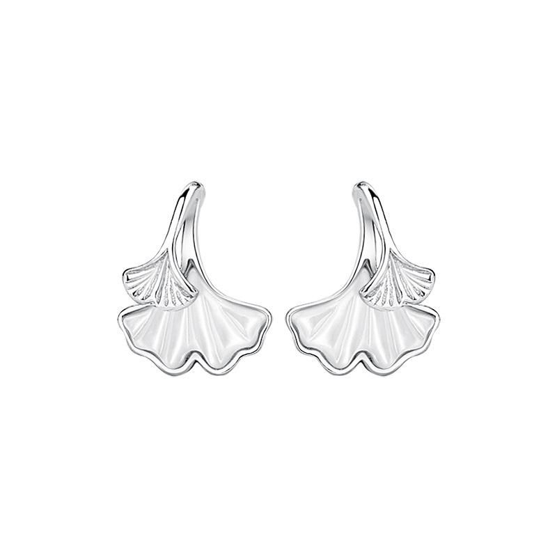 Buy Ginkgo Leaf Ear Studs Women's 999 Sterling Silver Forest Series White Shell Foot Silver Earrings Versatile in Nigeria