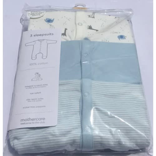 Designed with three different prints, these pure cotton sleepsuits are a must-have for baby. They have scratch mitts and snap button fastenings for easy changing.