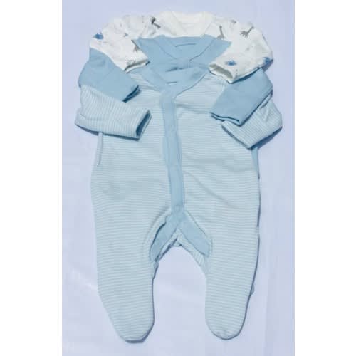 Fill their first wardrobe with this super sweet three pack of sleepsuit. Made from pure cotton that is comfortable to wear and stays soft after repeated washing and tumble drying. Featuring printed back neck labels which are super soft on baby & rsquo;s neck. These sleepsuit have integral scratch mitts up to 3-6 months and the feet are designed with lined inners comfort