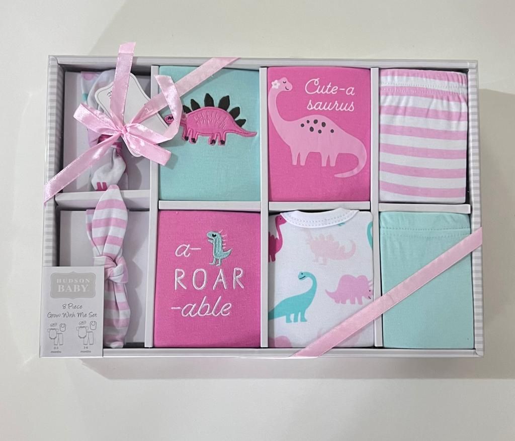 Description: Hudson Cotton SetSizes: 0-3M, and 3-6MGender: Baby GirlFabric Type: CottonStyle - CuteSet type: 8 pieceAge Group: InfantsSleeve Length: Age Group: 0 - 1 yearMaterial: