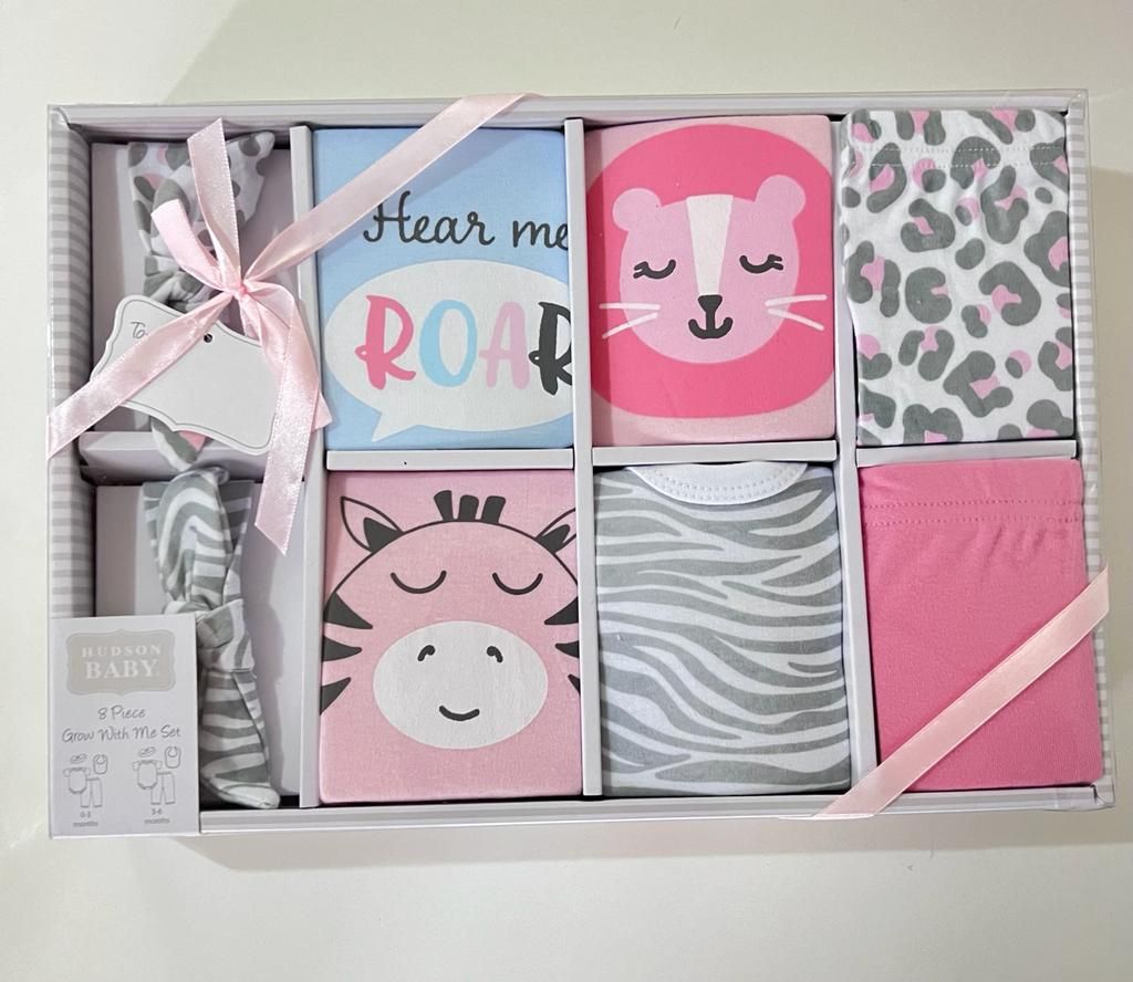 Description: Hudson Cotton SetSizes: 0-3M, and 3-6MGender: Baby GirlFabric Type: CottonStyle - CuteSet type: 8 pieceAge Group: InfantsSleeve Length: Age Group: 0 - 1 yearMaterial: