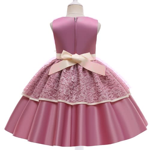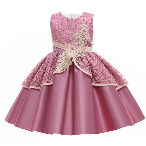 Elegant baby girl ball gown lace party dresses christening baptism dress. Layered lace floral embroidery design.