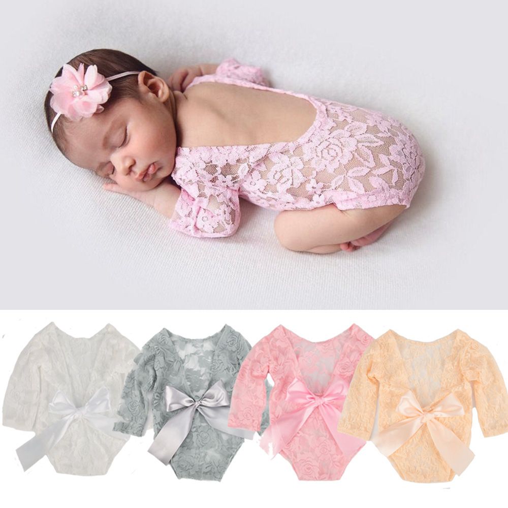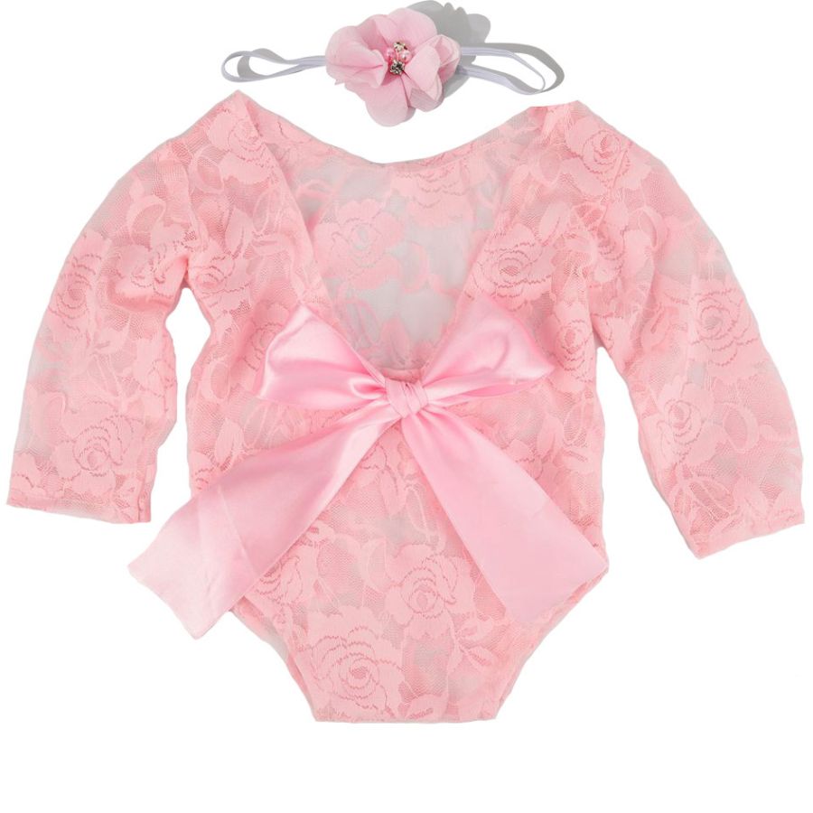 Buy Girl Piece Baby Props Hair Newborn Clothing Photo Growth Silk Two Dress Souvenirs Set Tie Lace Band + Bow Photography in Nigeria